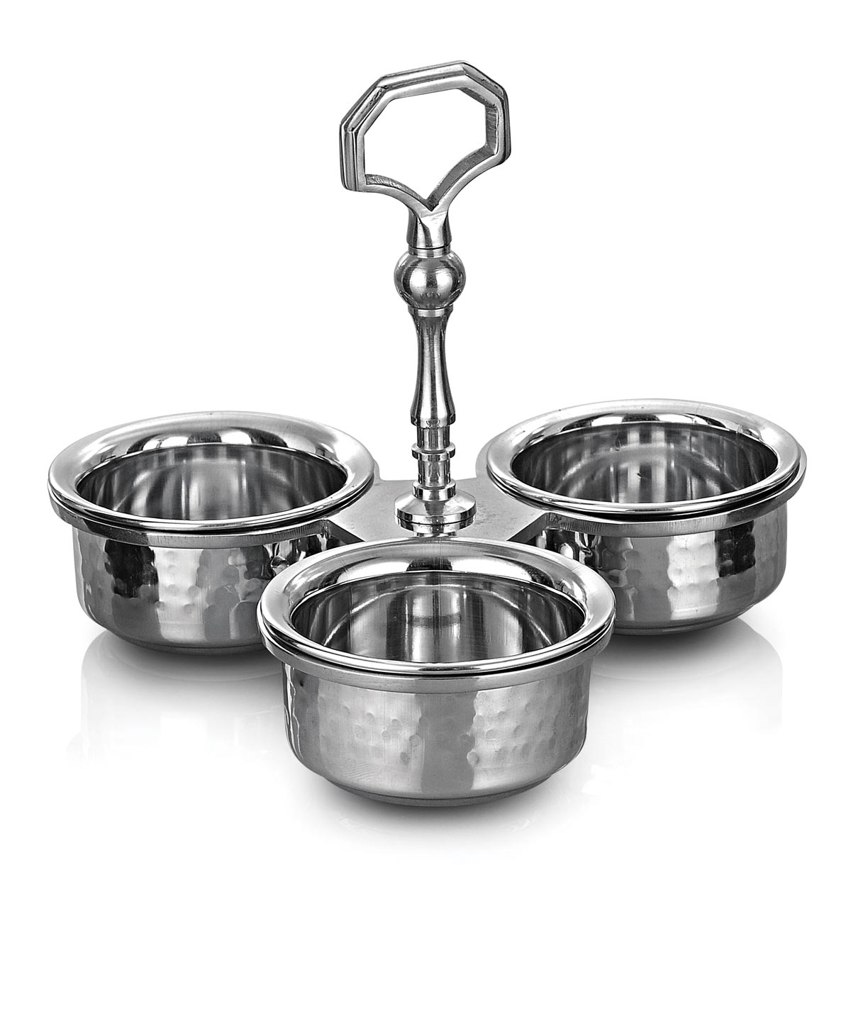 In traditional Indian fine dining, chutneys and pickles typically accompany a meal and are presented in small bowls kept in a decorative holder. With the Handmade Condiment Server, you can bring this tradition to your own dinner table to serve Indian meals in your western kitchen in a truly authentic way. Whether you use pre-made chutneys or make your own recipe, your dinner is sure to impress guests when you place this condiment holder on the table.