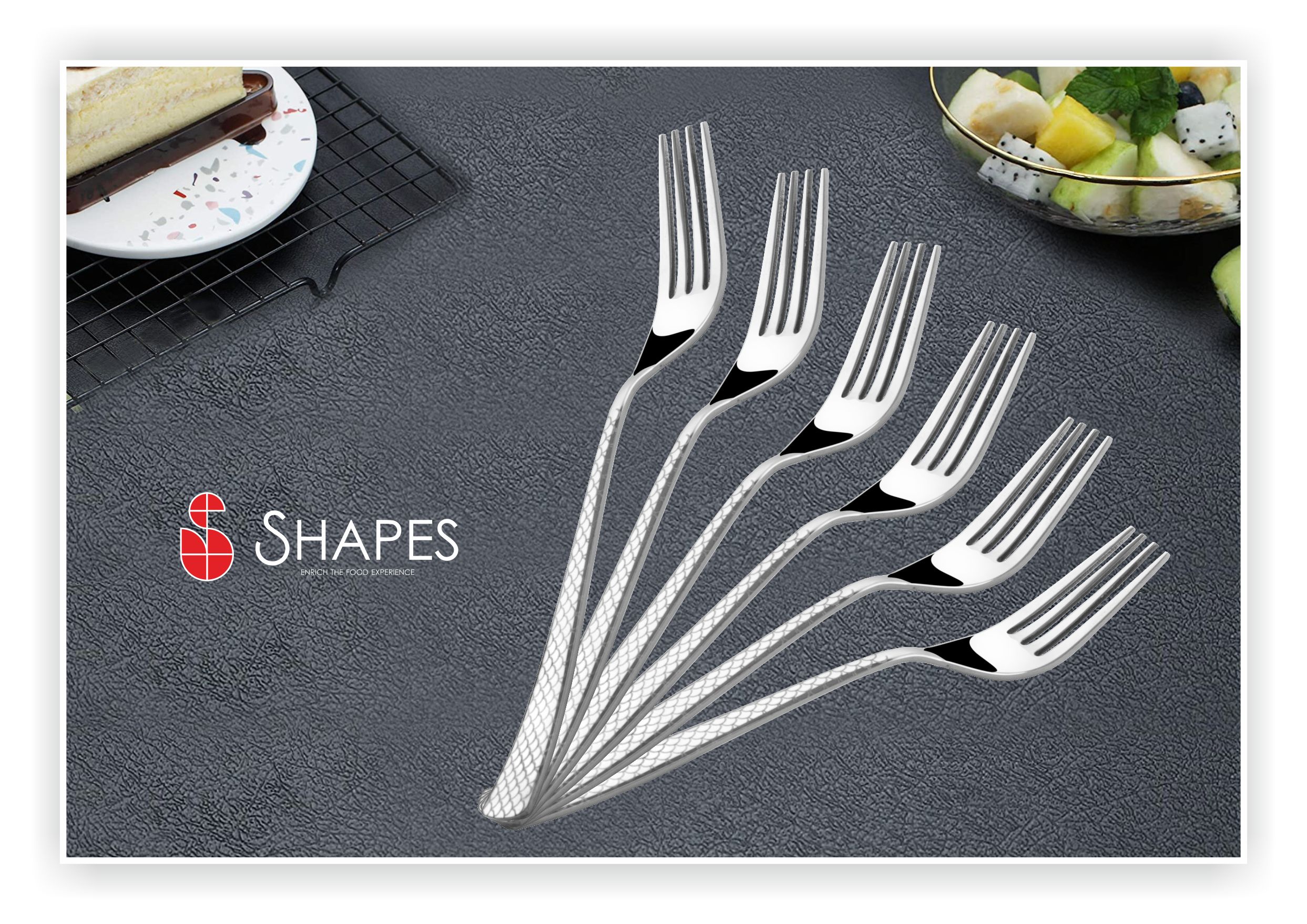 EON DINNER FORK Shapes Products Pvt. Ltd. provides fine and classy cutlery that can make a difference to your dining experience. It is a world class provider of quality stainless steel cutlery with in-house manufacturing unit in India. Make a difference to your kitchen through a range of most dazzling and exquisite cutlery offered by us. Our collection is an excellent demonstration of the beautification of cutlery. Make meals an elegant affair with well-designed, 100% food grade stainless steel cutlery. Add a touch of design to the table with practical, well-designed cutlery. These pieces have thick stems for durability, and soft-curved edges for safety, style and functionality. Our ranges will suit both basic and formal table settings.
