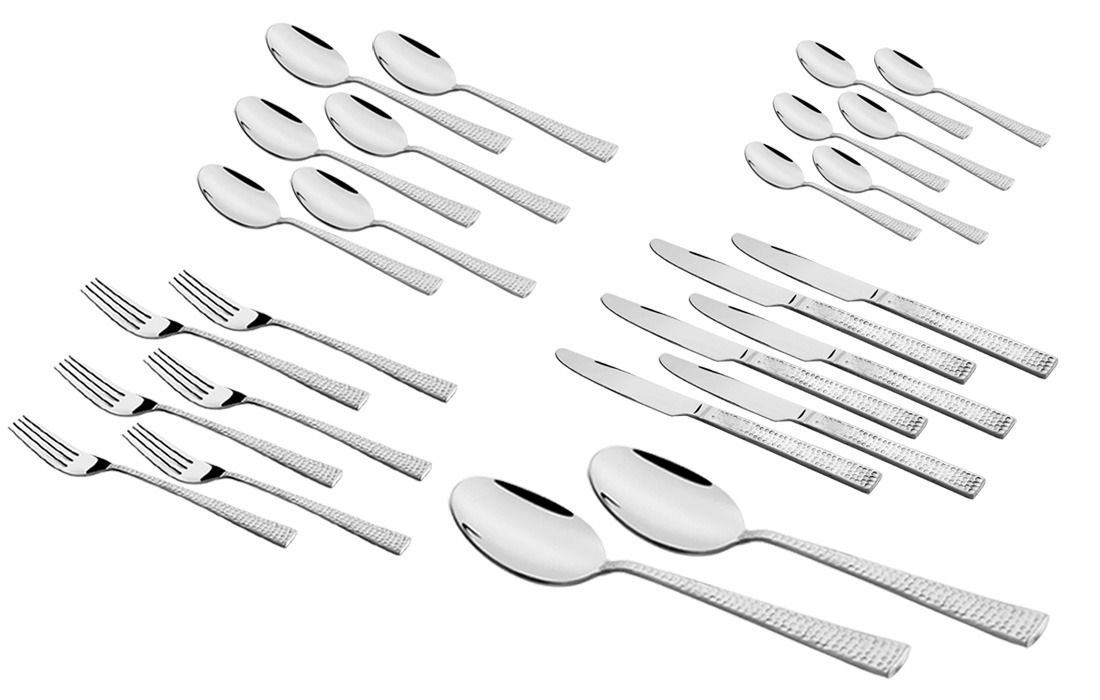 HAMMER 26 PCS SET Shapes Products Pvt. Ltd. provides fine and classy cutlery that can make a difference to your dining experience. It is a world class provider of quality stainless steel cutlery with in-house manufacturing unit in India. Make a difference to your kitchen through a range of most dazzling and exquisite cutlery offered by us. Our collection is an excellent demonstration of the beautification of cutlery. Make meals an elegant affair with well-designed, 100% food grade stainless steel cutlery. Add a touch of design to the table with practical, well-designed cutlery. These pieces have thick stems for durability, and soft-curved edges for safety, style and functionality. Our ranges will suit both basic and formal table settings