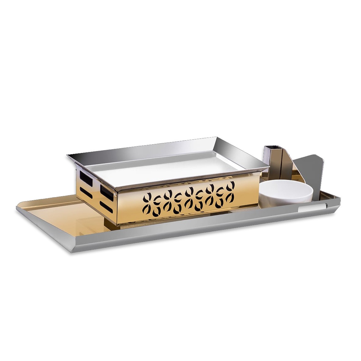 Stainless Steel snack server in a symbolic RECTANGULAR shape & gold color plating is ideal for serving different kinds of bite-sized snacks. Its aestheti design makes it more attractive and decorative. It makes an attractive centerpiece atop the table as well. Highest quality Food Grade Steel used in the making. Easy Maintenance – Requires lesser efforts for using, cleaning & maintaining the product.Lightweight – Makes it easy to carry around for a seamle
