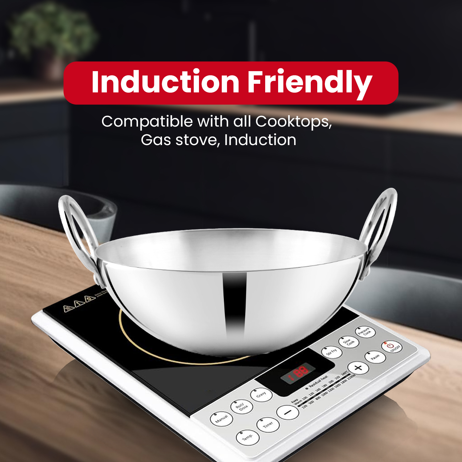 - This kadhai is induction-compatible, making it suitable for use on all types of stovetops, including gas, electric, and induction.