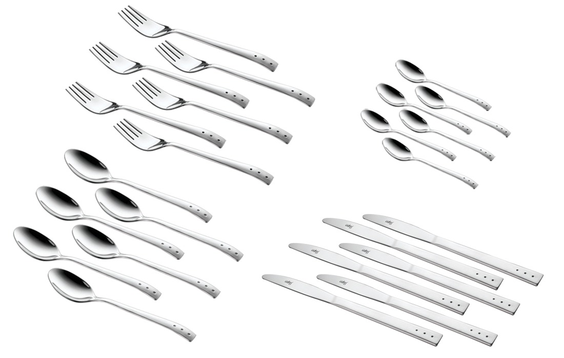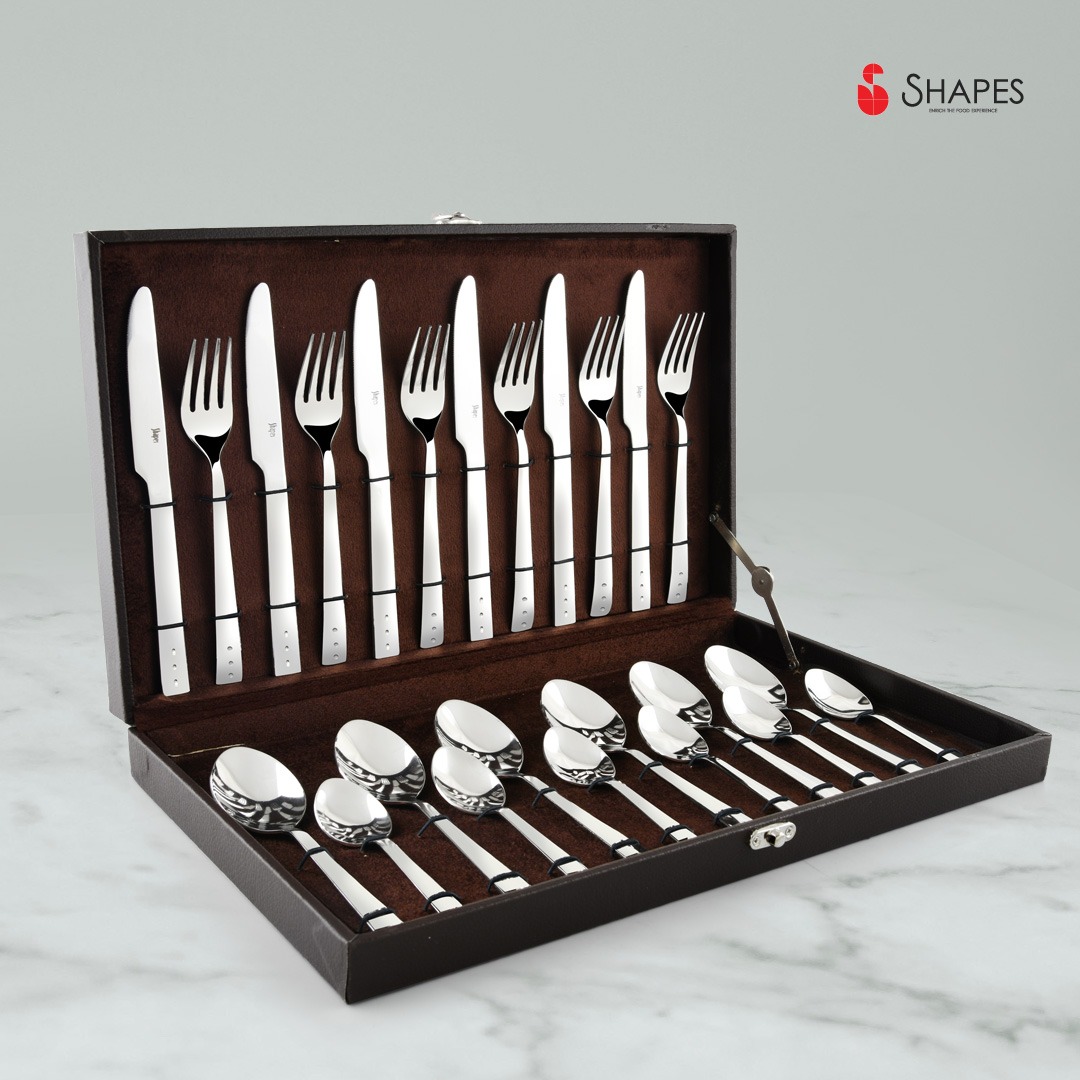 Shapes Triple Dot Cutlery Set of Spoons, Forks, Knives Tea Spoons with Gift Box, Set of 24 Pcs. (Contains: 6 Dinner Spoons, 6 Dinner Forks , 6 pcs Knives & 6 Tea Spoons with a Box) | Stylish Cutlery Set for Dining Table