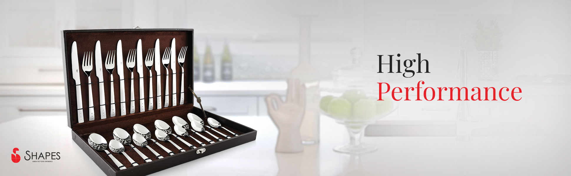 Shapes Products Pvt. Ltd. provides fine and classy cutlery that can make a difference to your dining experience. It is a world class provider of quality stainless steel cutlery with in-house manufacturing unit in India. Make a difference to your kitchen through a range of most dazzling and exquisite cutlery offered by us. Our collection is an excellent demonstration of the beautification of cutlery.Make meals an elegant affair with well-designed, 100% food grade stainless steel cutlery. Add a touch of design to the table with practical, well-designed cutlery. These pieces have thick stems for durability, and soft-curved edges for safety, style and functionality. Our ranges will suit both basic and formal table settings.