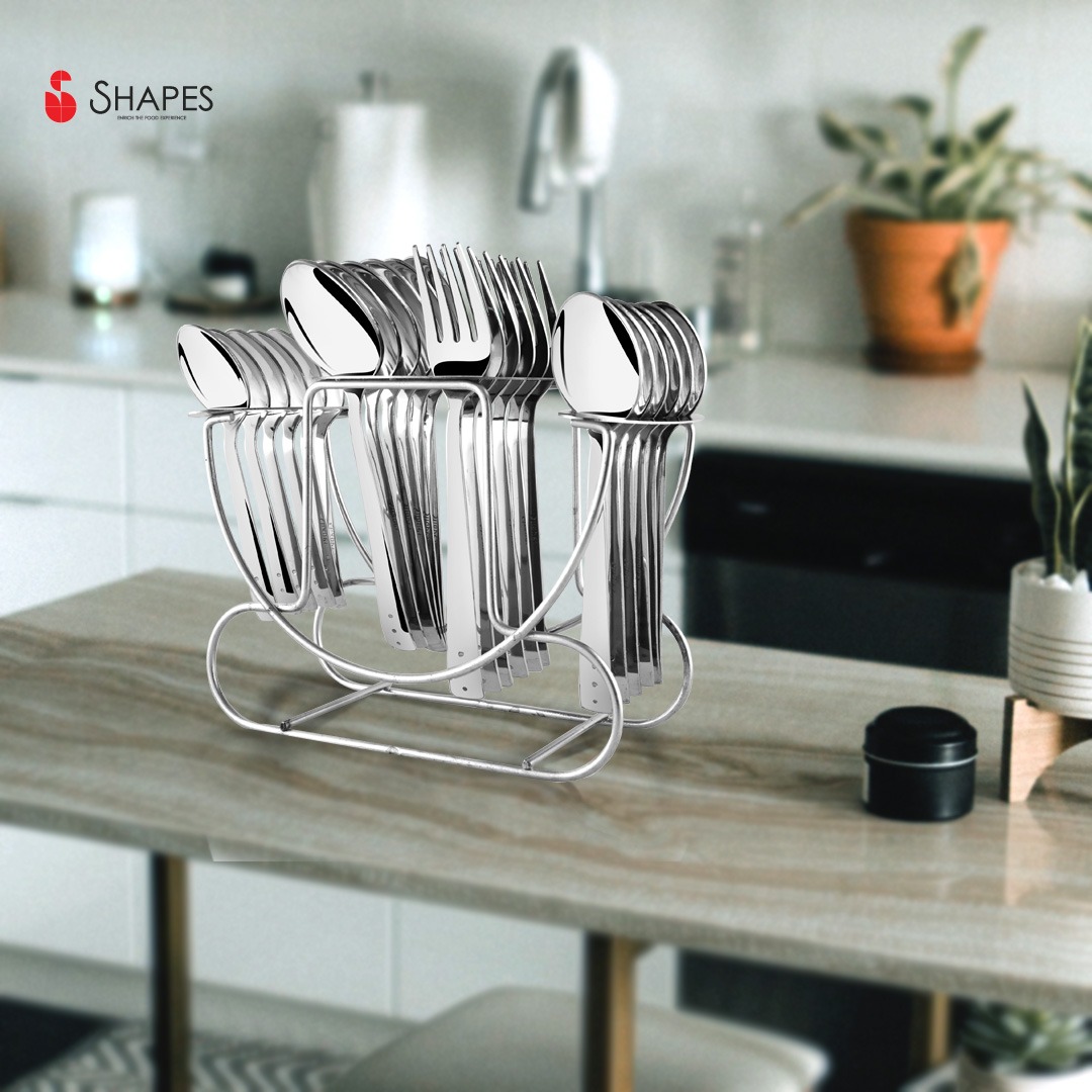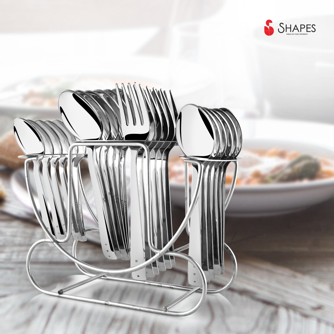 Shapes Products Pvt. Ltd. provides fine and classy cutlery that can make a difference to your dining experience.It is a world class provider of quality stainless steel cutlery with in-house manufacturing unit in India.Make a difference to your kitchen through a range of most dazzling and exquisite cutlery offered by us. Our collection is an excellent demonstration of the beautification of cutlery.Make meals an elegant affair with well-designed, 100% food grade stainless steel cutlery. Add a touch of design to the table with practical, well-designed cutlery. These pieces have thick stems for durability, and soft-curved edges for safety, style and functionality. Our ranges will suit both basic and formal table settings.Each piece in the Shapes Cutlery Set has delicate and simple design elements on them that will never go out of style no matter how often you use them. Moreover, these stylish pieces can be used everyday as they are designed with thick stems for durability. Its smooth edges also ensure safety.