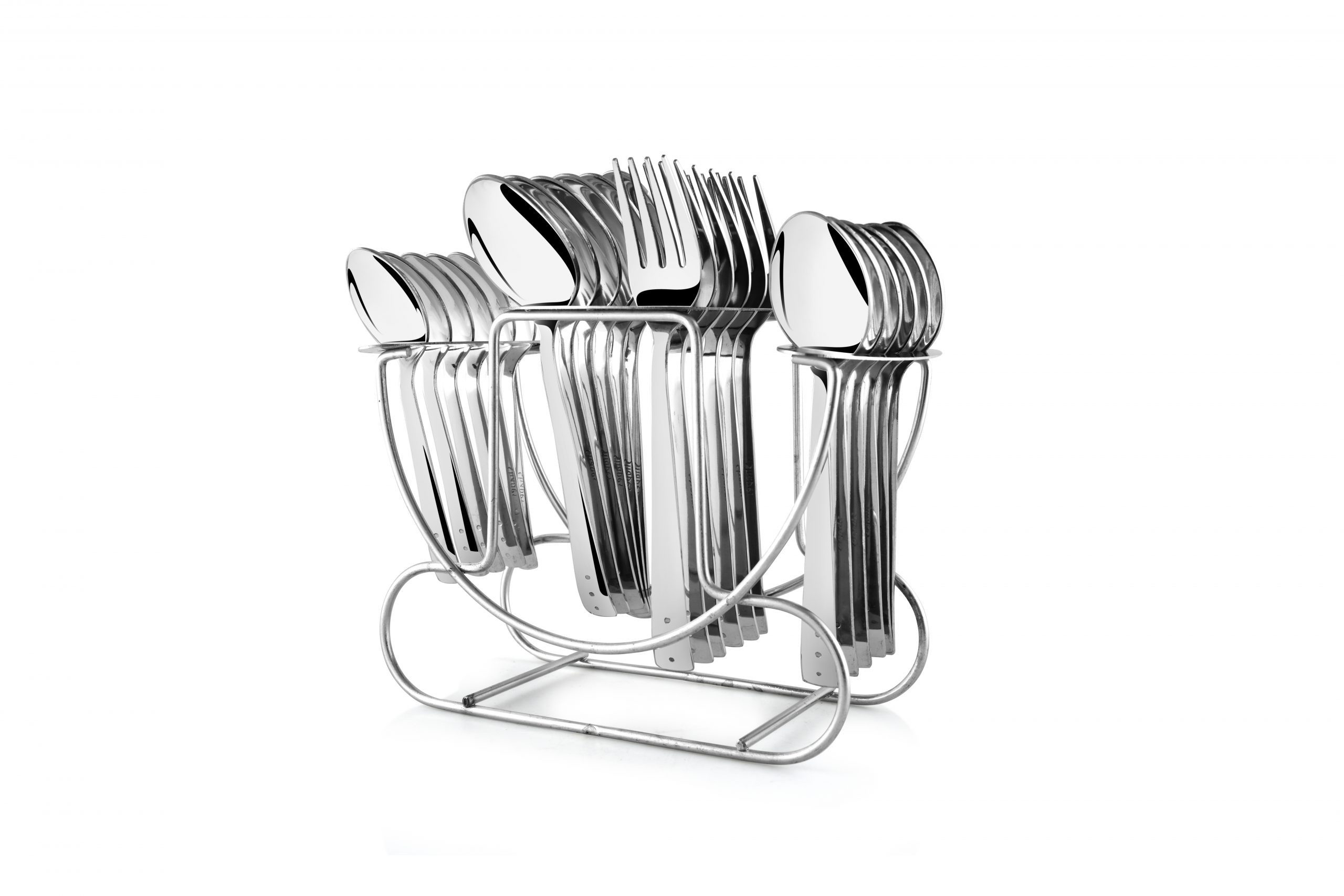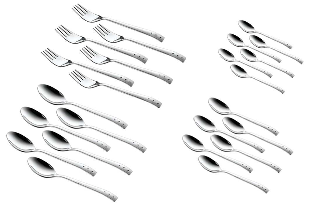 Shapes Triple Dot Cutlery Set of Spoons,Forks , Baby Spoon and Tea spoons with Gift Box, Set of 24 Pcs with cutlery stand . (Contains: 6 Dinner Spoons, 6 Dinner Forks ,6 pcs Knives & 6 Tea Spoons with a Box) | Stylish Cutlery Set for Dining Table