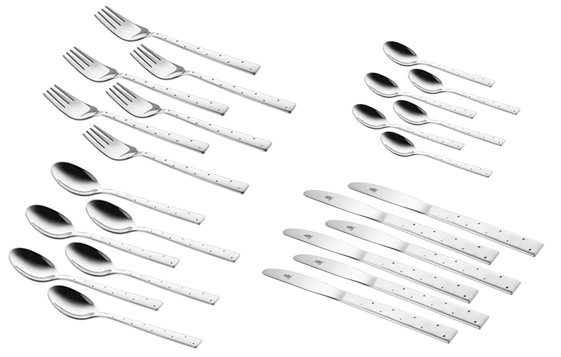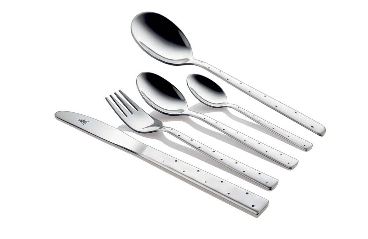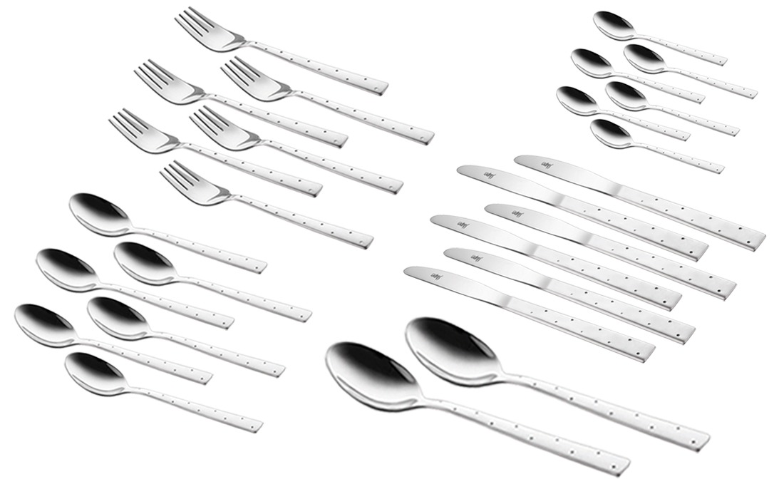 Shapes White Dot Cutlery Set of Spoons,Forks and Tea spoons with Gift Box, Set of 26 Pcs. (Contains: 6 Dinner Spoons, 6 Dinner Forks, 6 Tea Spoons , 6 pcs Dinner kinfe and 2 pcs Serving spoon with a Box) | Stylish Cutlery Set for Dining Table