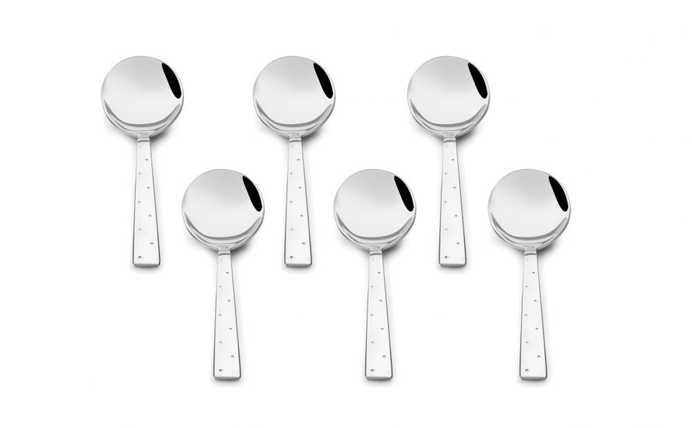 Shapes White Dot Stainless Steel Soup Spoon for Home/Kitchen, Set of 6 Pcs.